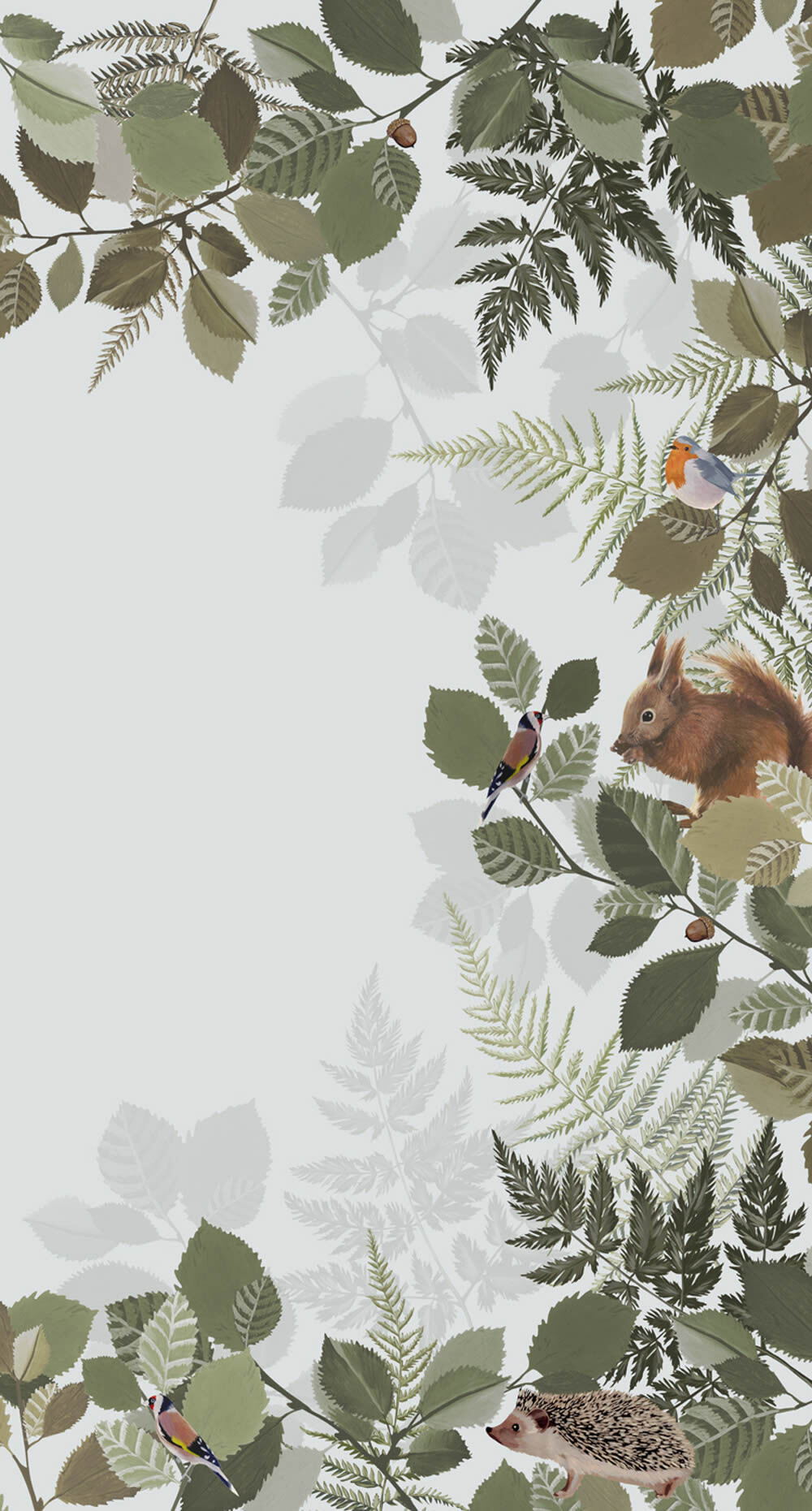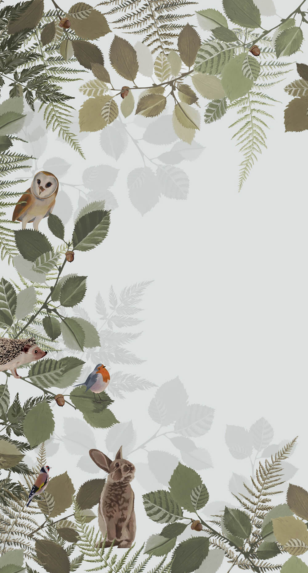 Hasen Igel kleine Vögelchen Graugrün Wandbild Woodland Rasch Textil 159051