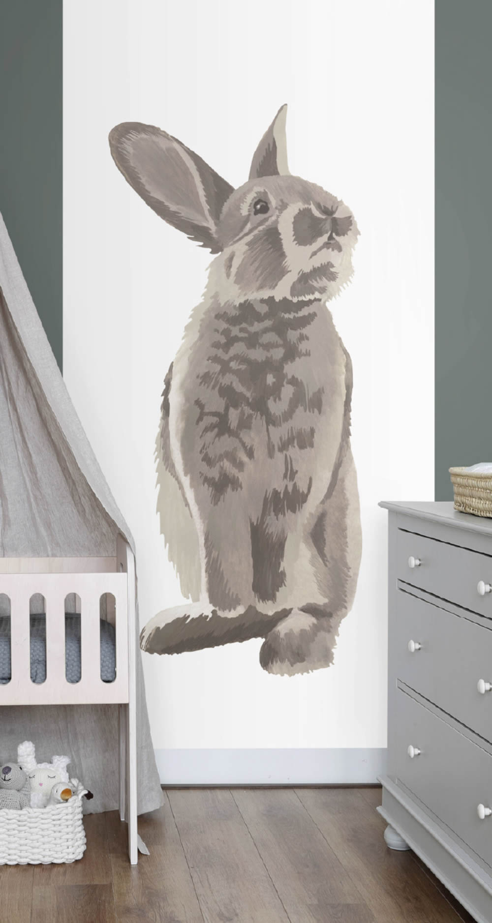 Produktinformationen "gezeichneter Hase Tier Wandbilder weiß und braunbeige Woodland Rasch Textil 159052"
