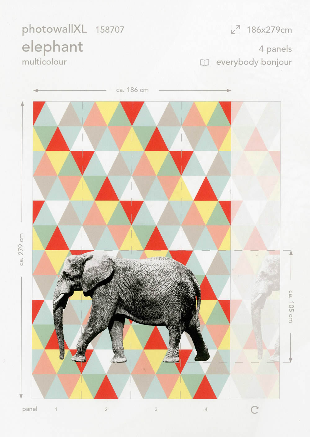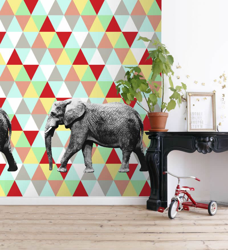 Vliestapete, Wandbild, bunt, grafisch, Dreiecke, Elefant, matt, glatt