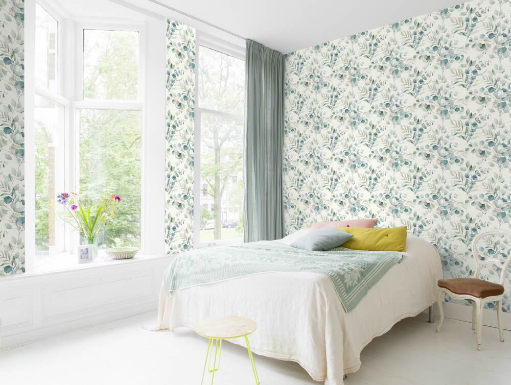 Vliestapete Eucalyptus Blätter pastellfarben Grün Kids World Rasch 300215_L
