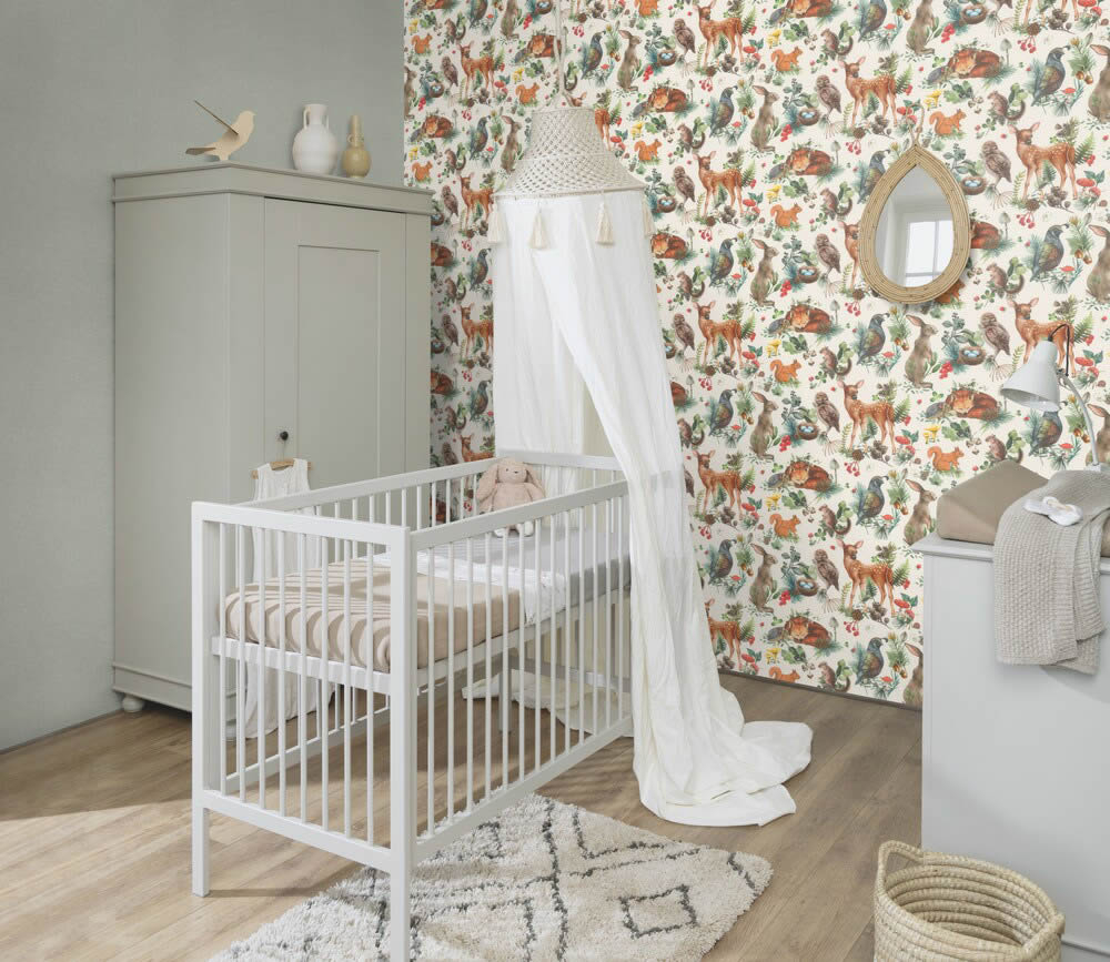 Vliestapete 300321 aus der Kollektion Kids World mit Vögel und Füchse und Waldtiere-Motiven im Farbton braun. Alle Vliestapeten dieser Kinderkollektion sind 100% PVC-frei. Gestalten Sie ein Themenzimmer für Jungs und Mädchen mit dieser Vliestapete zum gemaltem Motto Eichhörnchen und Reh. Die Oberfläche der Vliestapete ist matt und die Struktur ist glatt. Das Format beträgt 0,53 x 10,05 m. Werden Sie zum Innenarchitekt Ihres Babyzimmers und Kinderzimmers und gestalten Sie die Wände mit Tapetenprodukten aus Vlies PVC-frei aus der Kollektion Kids World von Rasch. Babys und Kids freuen sich über Waldtiere Tapeten. Mit einer Vliestapete können Sie gemeinsam mit Ihrem Kind die Wände verschönern. Waldtiere Tapeten als Eyecatcher hinter dem Bett oder dem Sideboard im Babyzimmer und Kinderzimmer.