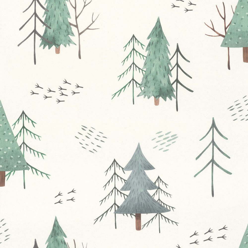 Musterstück Vliestapete nordische Tannen Wald pastellfarben Beige Kids World Rasch 300741