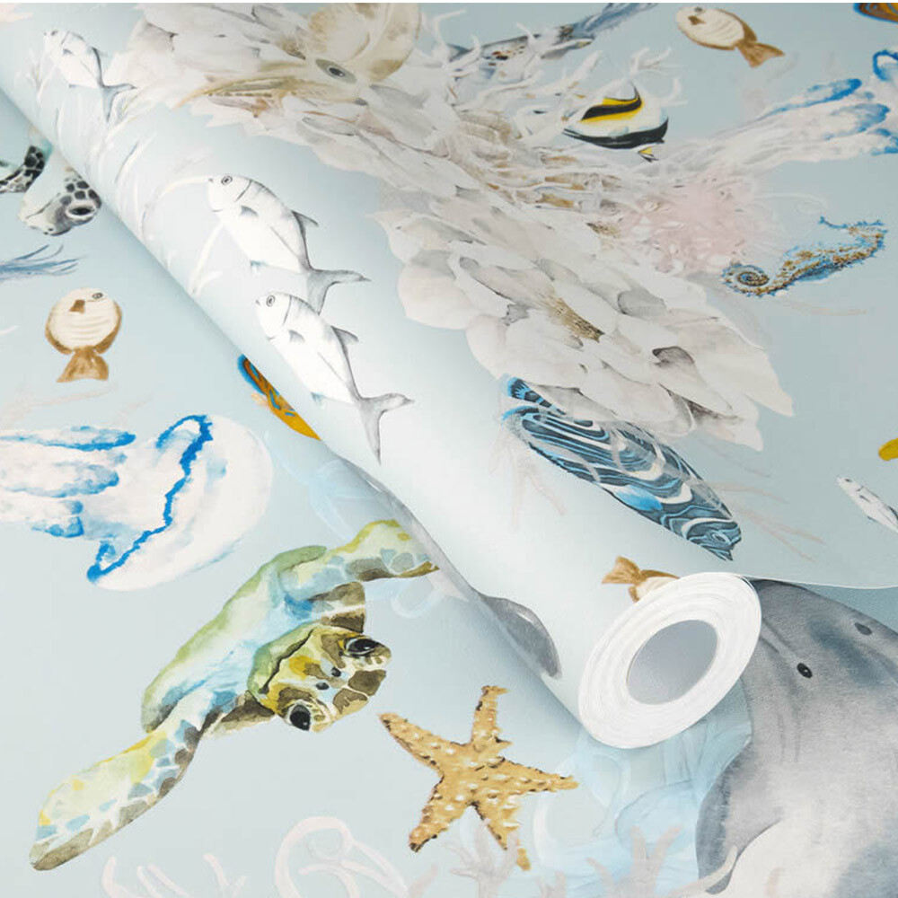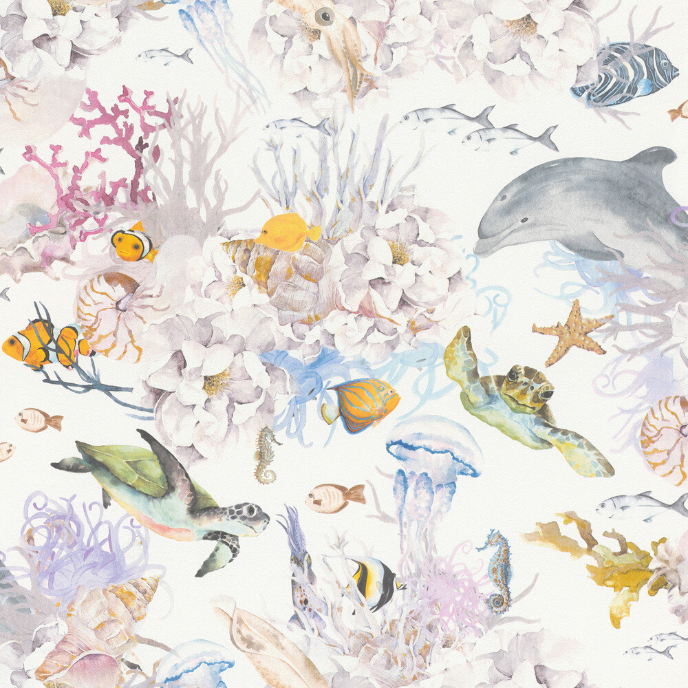 Produktinformationen "Vliestapete Pastellfarbene Korallen Delfine Fische Unterwasserwelt Blau 301328_L"