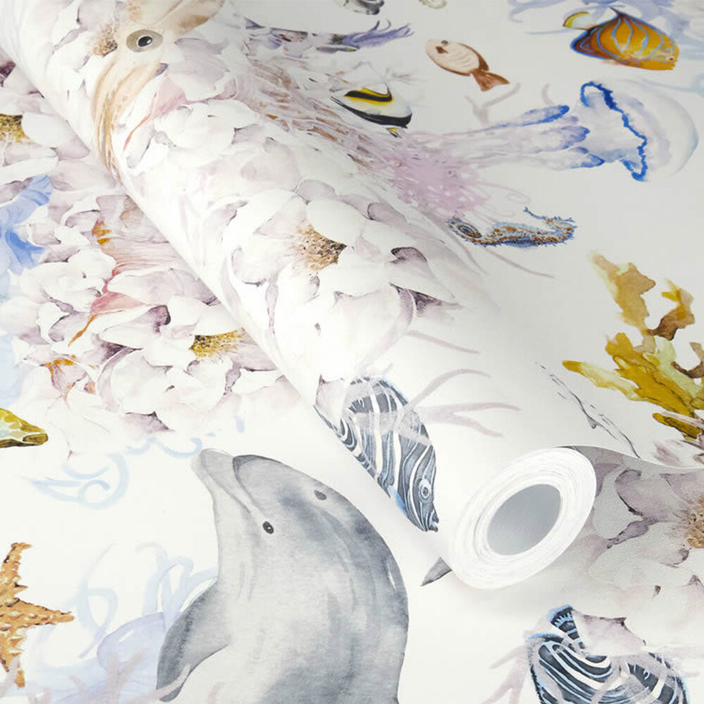 Vliestapete Pastellfarbene Korallen Delfine Fische Unterwasserwelt Blau 301328_L