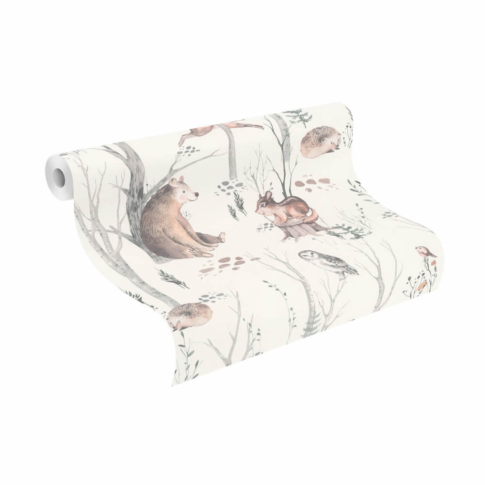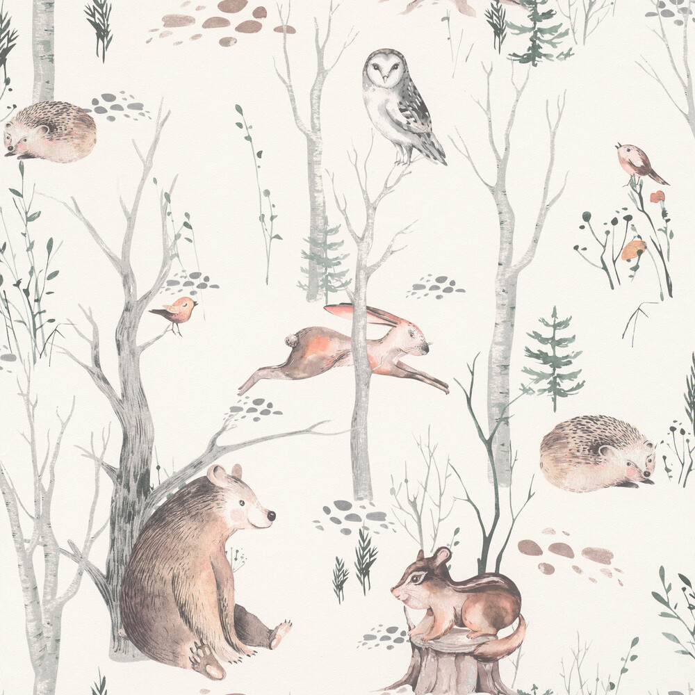 Vliestapete Tiere Wald pastellfarben Braun Kids World Rasch 300048_L