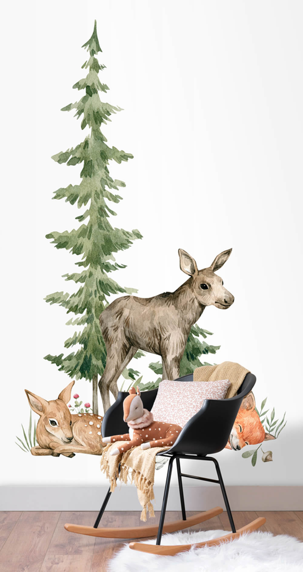 Produktinformationen "Wandbild 1,59 x 3,00 m Waldtiere Reh Fuchs Elch 365009"