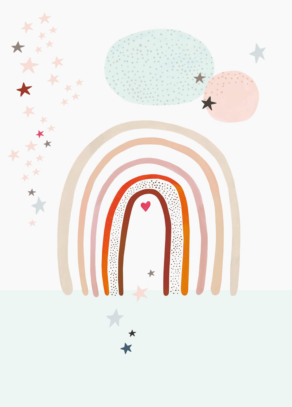 Wandbild Regenbogen Sterne Herzen pastellfarben weiß 557381