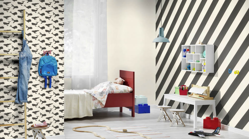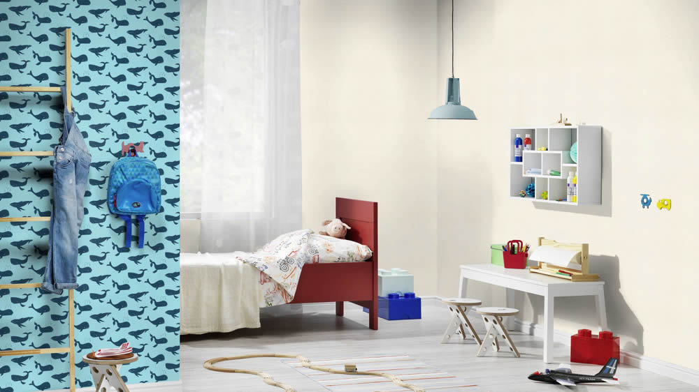 Die creme-weiße Vliestapete wirkt frisch und freundlich im Kinderzimmer.
