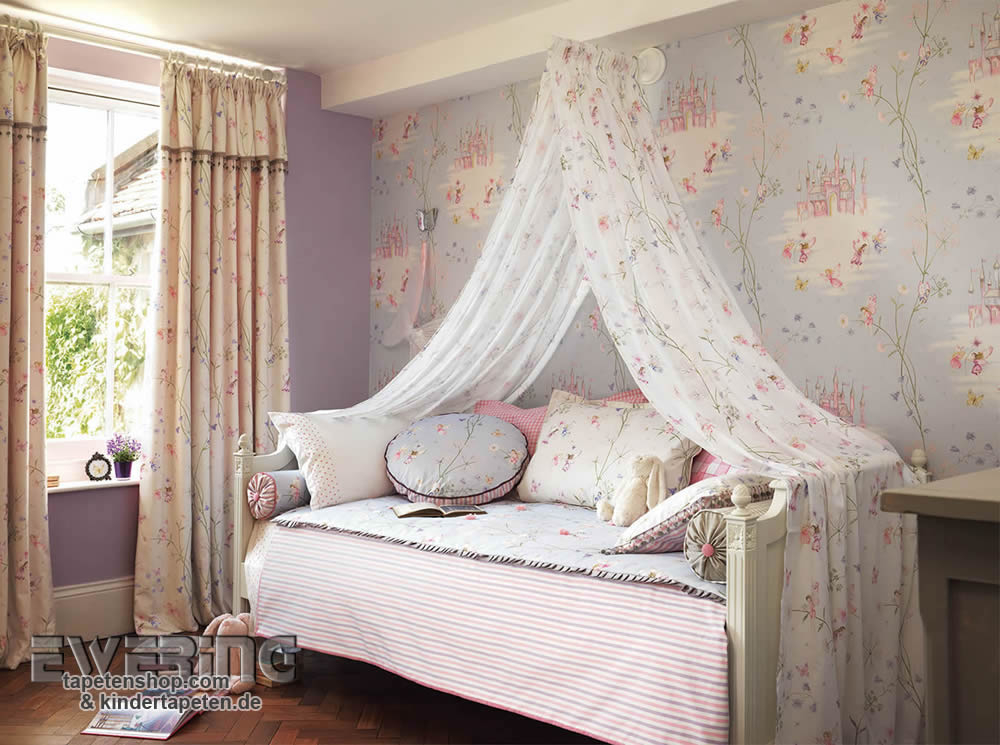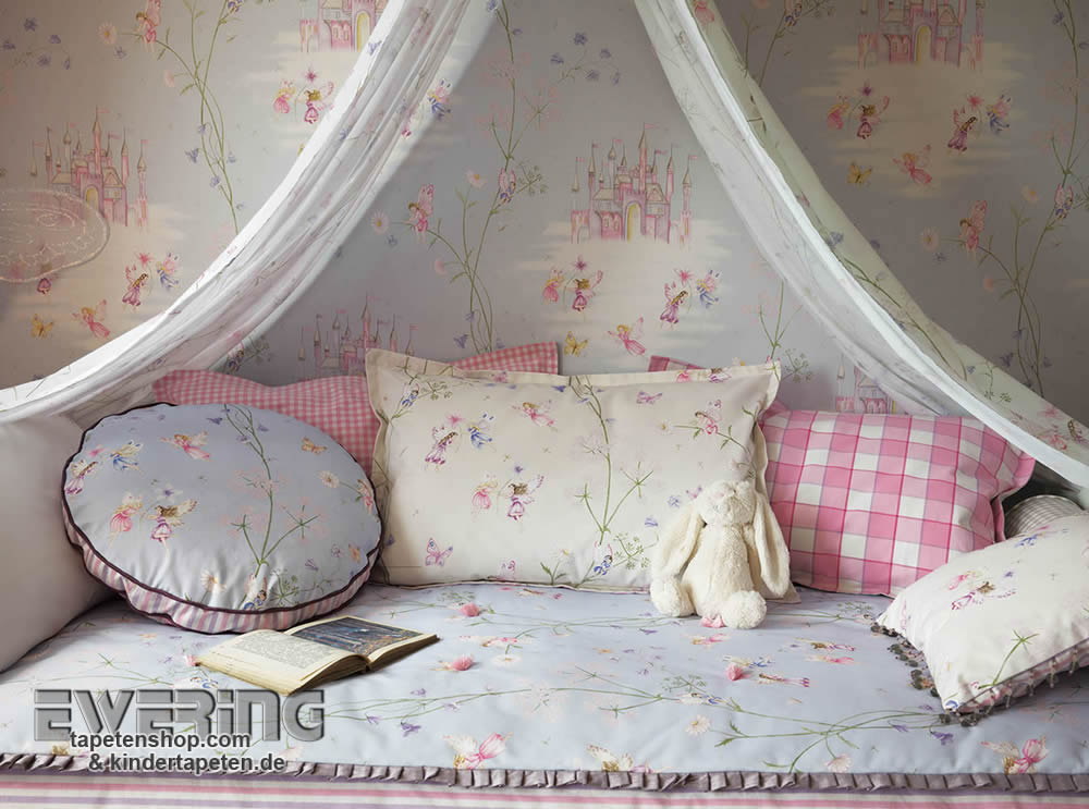Baby-Blau, pink, lila, grün, weiß, Schloss, Märchen, Feen, Blumen, Dekostoff, Meterware