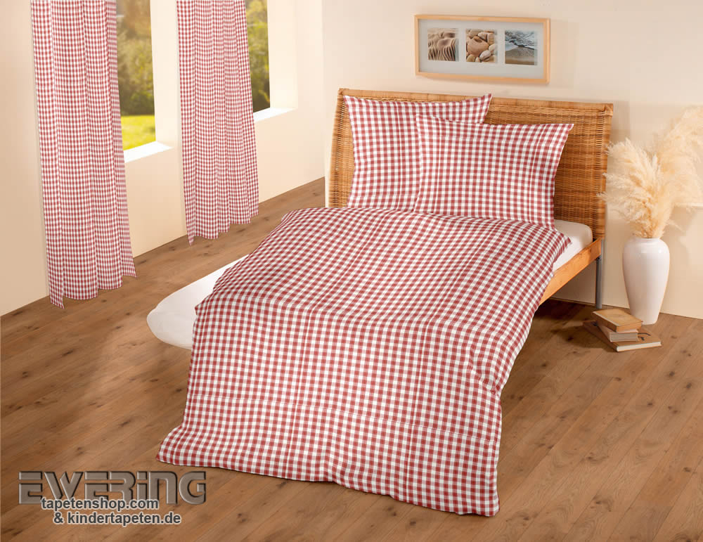 Rot, weiß, matt, glatt, Dekostoff, Karo-Muster, Meterware, Jungenzimmer