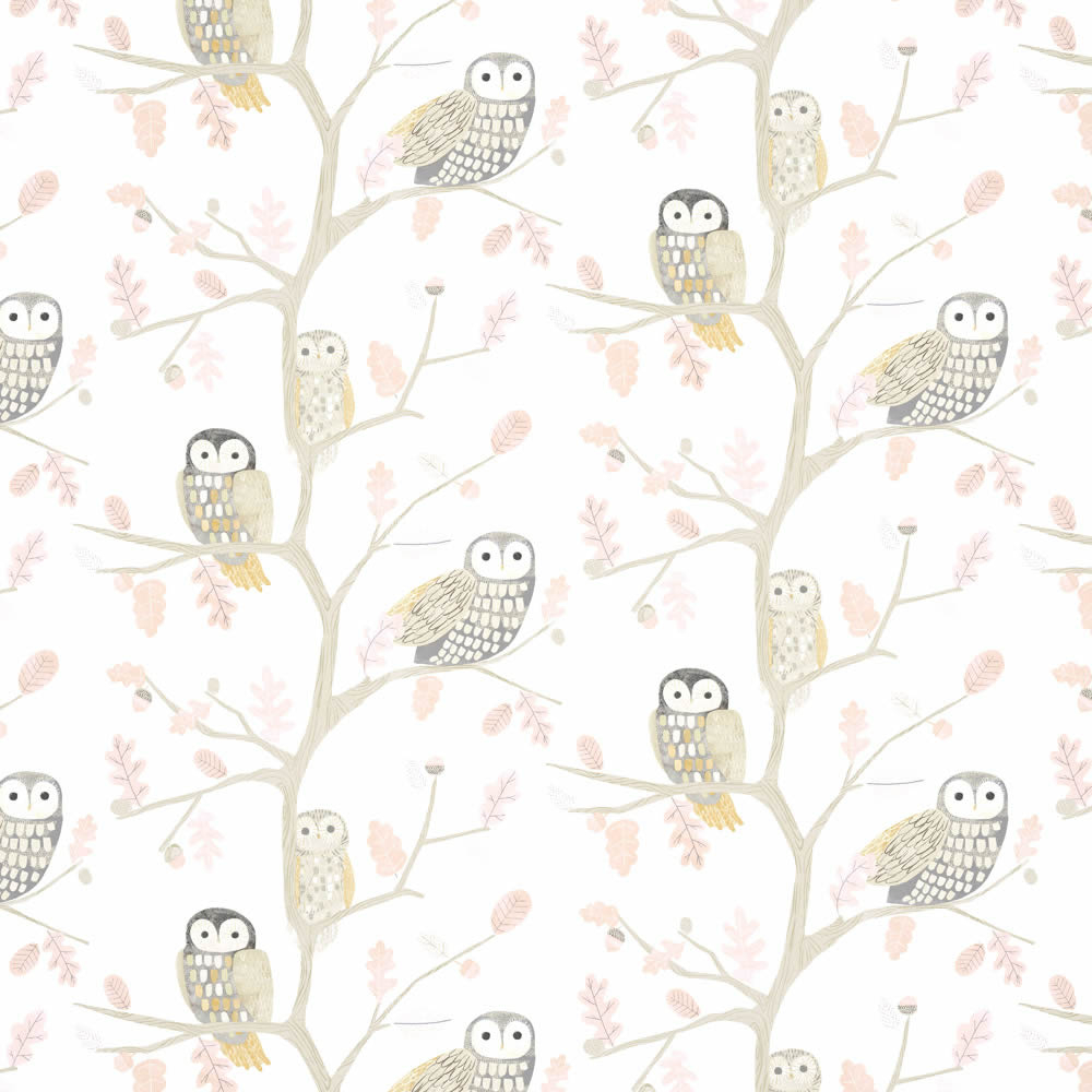 Produktinformationen "Tapete Eulen Waldmotiv Bäume rosa weiß HLTF112628"