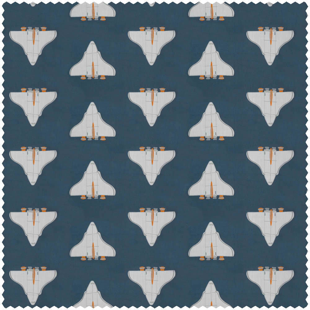 Stoff HLTF133547 für das Kinderzimmer zum Thema Raketen im Himmel und Weltall in blau. Lassen Sie Ihrer Kreativität freien Lauf. Wählen Sie einen Stoff passend zur Wandgestaltung und ergänzen Sie das Gestaltungskonzept. Farblich und vom Muster her passende Stoffe können, je nach Stoffart, als Kissenbezug, Bettwäsche, Betthimmel oder Gardine verarbeitet werden. Raumschiffe-Muster schaffen ein cooles Spieleparadies für Ihr Kind und passen zur Zielgruppe Jungs und Mädchen. Dieser Stoff hat eine matt und glatte Oberfläche und ist im Format 136 cm x lfm. Diese Kollektion hält eine Vielzahl weiterer passender abenteuerlicher Tapeten von Harlequin bereit. Kids freuen sich über Weltall Stoff. In nur wenigen Handgriffen verwandelt sich das Kinderzimmer mit einem Stoff zum Thema Weltall. Lassen Sie einzelne Wände lebendig werden und nutzen Sie den Artikel HLTF133547 für die Kinderzimmer-Gestaltung.