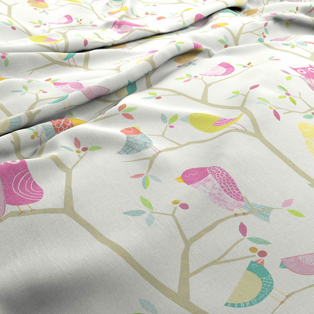 Produktinformationen "Stoff bunte Vögelchen auf Bäumen beige HLTF120955"