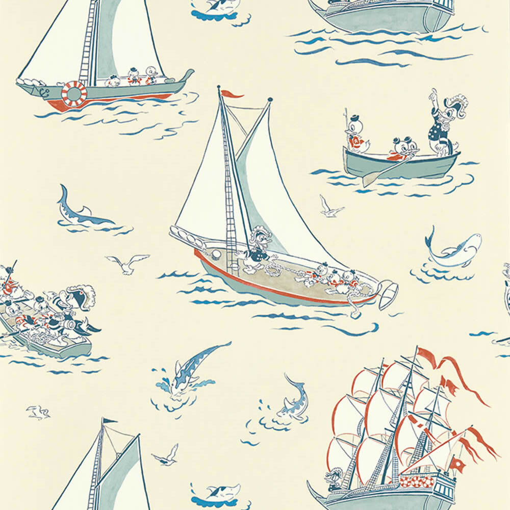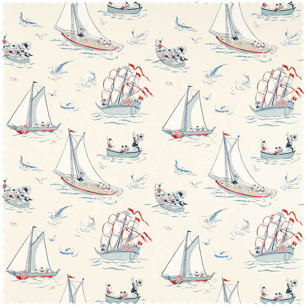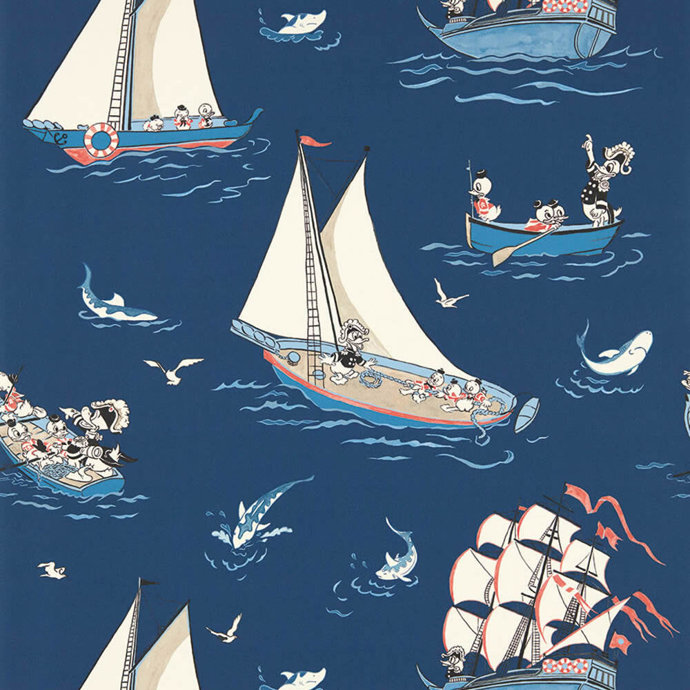 Donald Duck-Muster auf Dekostoffen sind sehr beliebt und die Farbe dunkelblau passt gut zum Donald Duck auf hoher See-Motiv DDIF227161. Stoffe sind eine tolle Ergänzung bei der Mädchenzimmer-Gestaltung. Sie ergänzen das Gestaltungskonzept, sorgen für mehr Gemütlichkeit und bieten die Möglichkeit zusätzliche Eyecatcher zu setzen. je nach Stoffart können daraus Bettwäschen, Kissen, Gardinen oder auch Betthmmel genäht werden. Lassen Sie Ihrer Kreativität freien Lauf und ergänzen das Kinderzimmer mit einem Stoff passend zur Wandgestaltung. Maritime Motive zum Thema Tick, Trick und Track nehmen Ihre Jungs und Mädchen auf diesem Dekostoff mit ins Abenteuerland. Die Größe beträgt 1,38 x lfm und die Oberfläche und Struktur sind matt und glatt. Das Material ist 100% Baumwolle. Gestalten Sie die Wände gemeinsam mit Ihrem Kind mit einem der Tapetenprodukte aus 100% Baumwolle aus der Kollektion Disney Home vom Tapetenhersteller Sanderson. Mit Donald Duck Dekostoff gestalten Sie Ihren Babys, Kids und Teenies einen Rückzugsort zur Trendstilrichtung gezeichnet und maritim. Dekostoffe bieten die Möglichkeit die Wände passend zu den Mädchenzimmer-Accessoires zu gestalten. Donald Duck Dekostoff wirken als toller Hingucker im Mädchenzimmer und zur Ergänzung bietet dieser Hersteller viele zum Motiv passende Tapeten für Babys, Kids und Teenies.