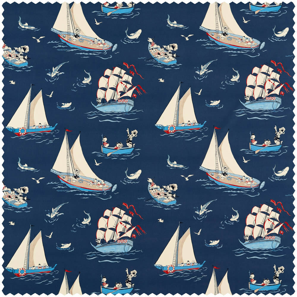 Dekostoff Donald Duck Tick Trick und Track Boote dunkelblau DDIF227161