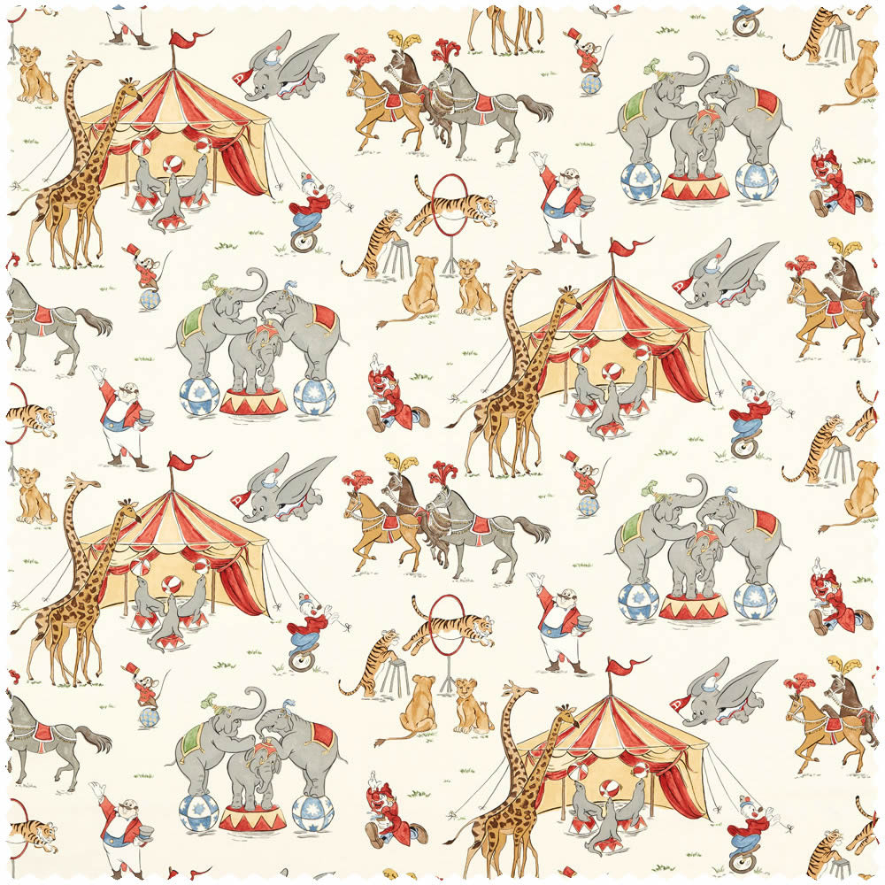 Dekostoff Dumbo Zirkus Elefanten Giraffen Pferde Disney beige DDIF227163