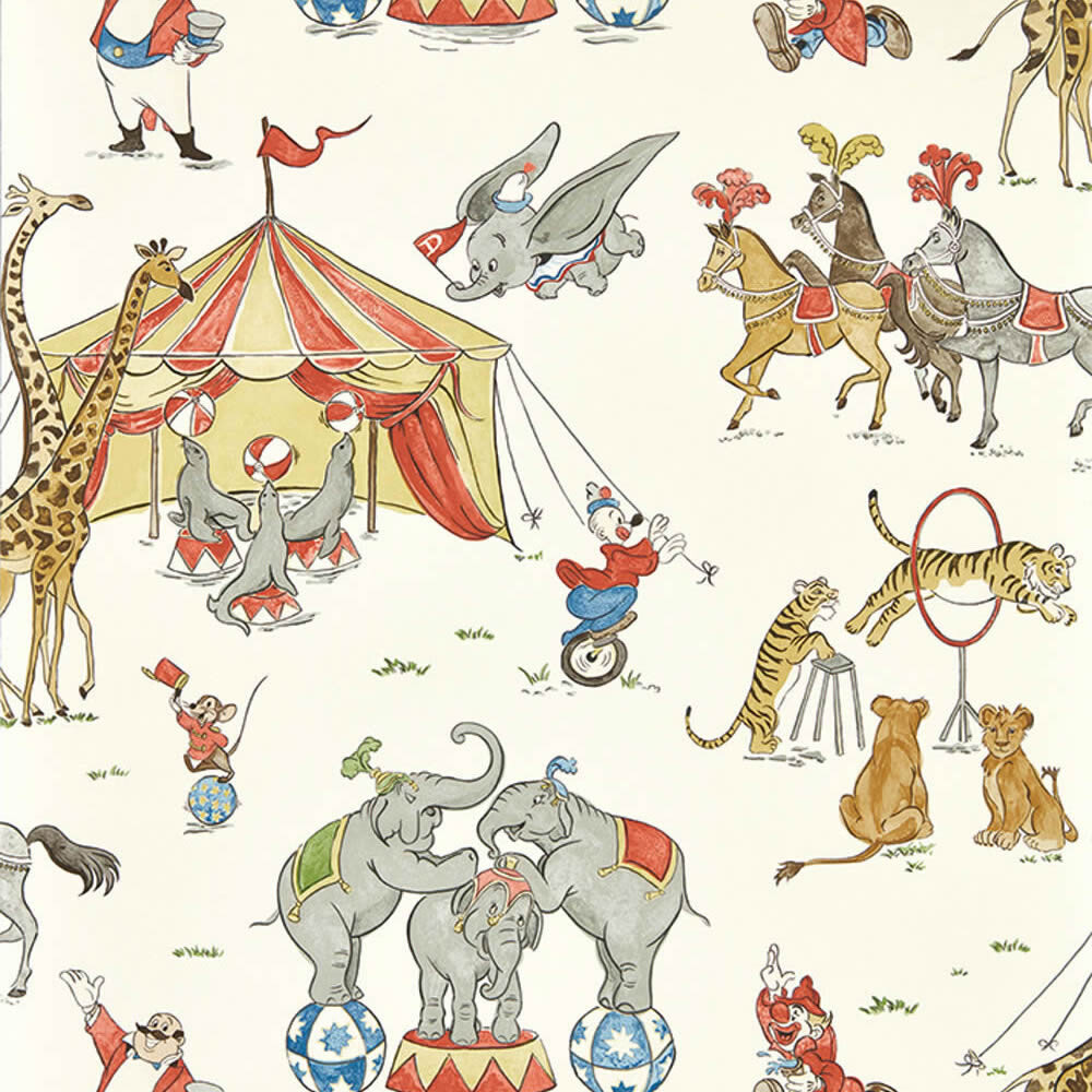 Musterstück Dekostoff Dumbo Zirkus Elefanten Giraffen Pferde Disney beige DDIF227163