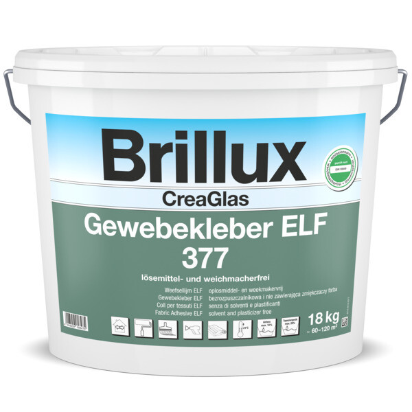 Brillux CreaGlas Bindemittel ELF 377 ist ein Dispersionsklebstoff, der mit Wasser verdünnt werden kann und speziell zur Befestigung von CreaGlas Gewebe bzw. Glasvlies und Wandverzierungen im Innenbereich konzipiert wurde. Es ist ideal für den Gebrauch auf widerstandsfähigen Untergründen wie Innenputz, Beton, Gipskarton und intakten Dispersionsfarbenanstrichen (abhängig von der Druckfestigkeit). Dieser Klebstoff ist emissionsarm, ohne Lösungsmittel und Weichmacher und ist ebenfalls für die Verwendung mit Tapezier- und Airlessgeräten geeignet. Mit seiner starken Anfangsklebekraft und einer langen Verarbeitungszeit ermöglicht er eine einfache und genaue Anwendung. Brillux CreaGlas Bindemittel ELF 377 trocknet transparent auf und ist diffusionsoffen. Bei der Verwendung mit CreaGlas Gewebe ist der Klebstoff schwer entflammbar B1 bzw. nicht brennbar A2. Darüber hinaus ist er im Verbund mit Rapidvlies 1525 und Lightvlies 130 schwer entflammbar B1. Brillux CreaGlas Bindemittel ELF 377 ist ein Premium-Produkt, das sich ideal für die Verklebung von CreaGlas Gewebe und Glasvlies im Innenbereich eignet. Mit seiner transparenten Trocknung und diffusionsoffenen Eigenschaften gewährleistet es eine zuverlässige Haftung und fördert ein gesundes Raumklima.