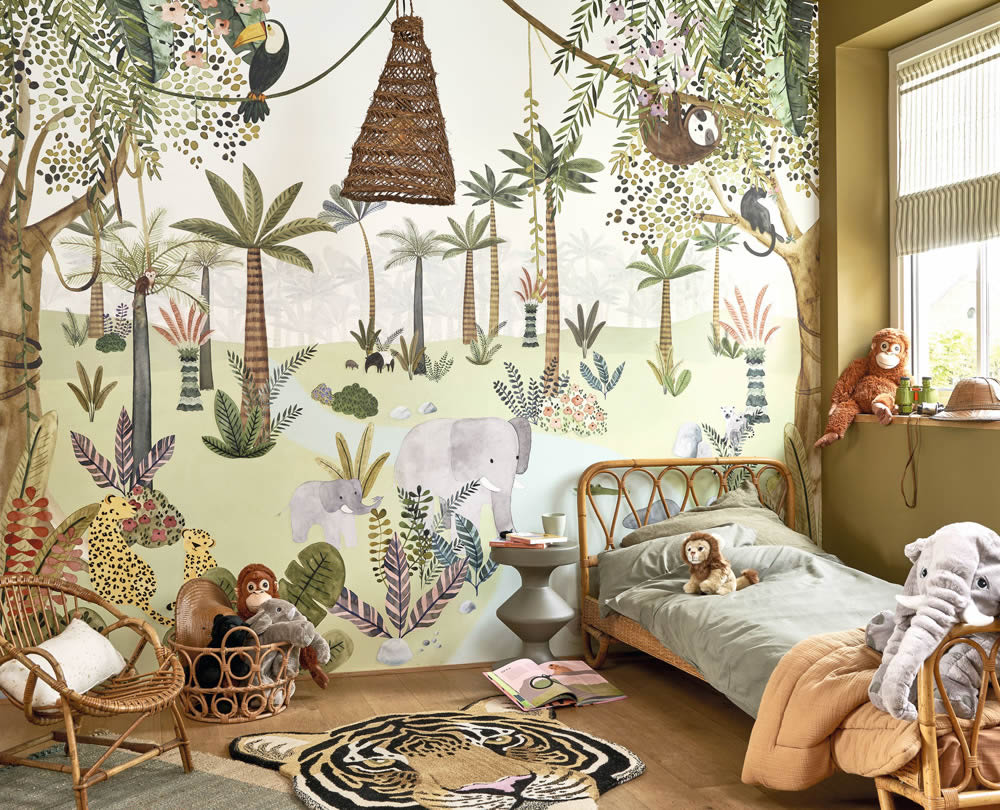 Diese elegante Vliestapete bringt mit ihrem filigranen Blätter- und Rankenmuster die Schönheit des Urwalds ins Kinderzimmer. Die Kombination aus sanften Oliv- und Minttönen auf weißem Hintergrund schafft eine frische und beruhigende Atmosphäre, die ideal für Babys, Kleinkinder und heranwachsende Kinder ist. Das natürliche Design mit feinen Blättern und geschwungenen Ranken wirkt dezent, aber dennoch lebendig und verleiht dem Raum eine harmonische Leichtigkeit. Die matte, glatte Oberfläche sorgt für eine stilvolle Optik, die sich nahtlos in verschiedene Wohnstile einfügt. Mit einem versetzten Ansatz von 21 cm entsteht ein ausgewogenes, fließendes Muster, das den Raum optisch auflockert. Die hochwertige Vliesqualität macht die Anbringung besonders einfach: Dank der Wandklebetechnik wird der Kleister direkt auf die Wand aufgetragen, wodurch die Bahnen mühelos angebracht werden können. Neben der unkomplizierten Verarbeitung überzeugt die Tapete mit praktischen Eigenschaften. Sie ist gut lichtbeständig, waschbeständig und kann trocken restlos entfernt werden, was sie besonders pflegeleicht und langlebig macht. Ob als stilvolle Akzentwand oder für eine vollständige Raumgestaltung – diese Tapete bringt eine natürliche, beruhigende Note in jedes Kinderzimmer. Mit der bewährten Qualität der Casadeco-Kollektion verbindet sie modernes Design mit hoher Funktionalität und schafft eine gemütliche, inspirierende Umgebung.