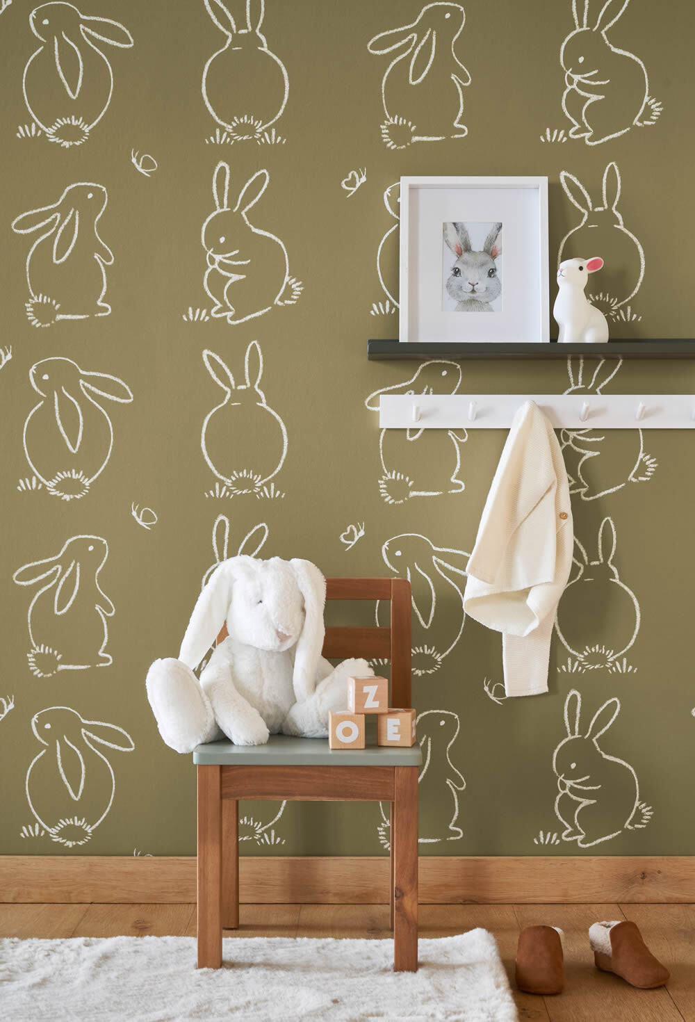 Produktinformationen "Musterstück Vliestapete gezeichnete Hasen Tiere grün OUAT88387526"