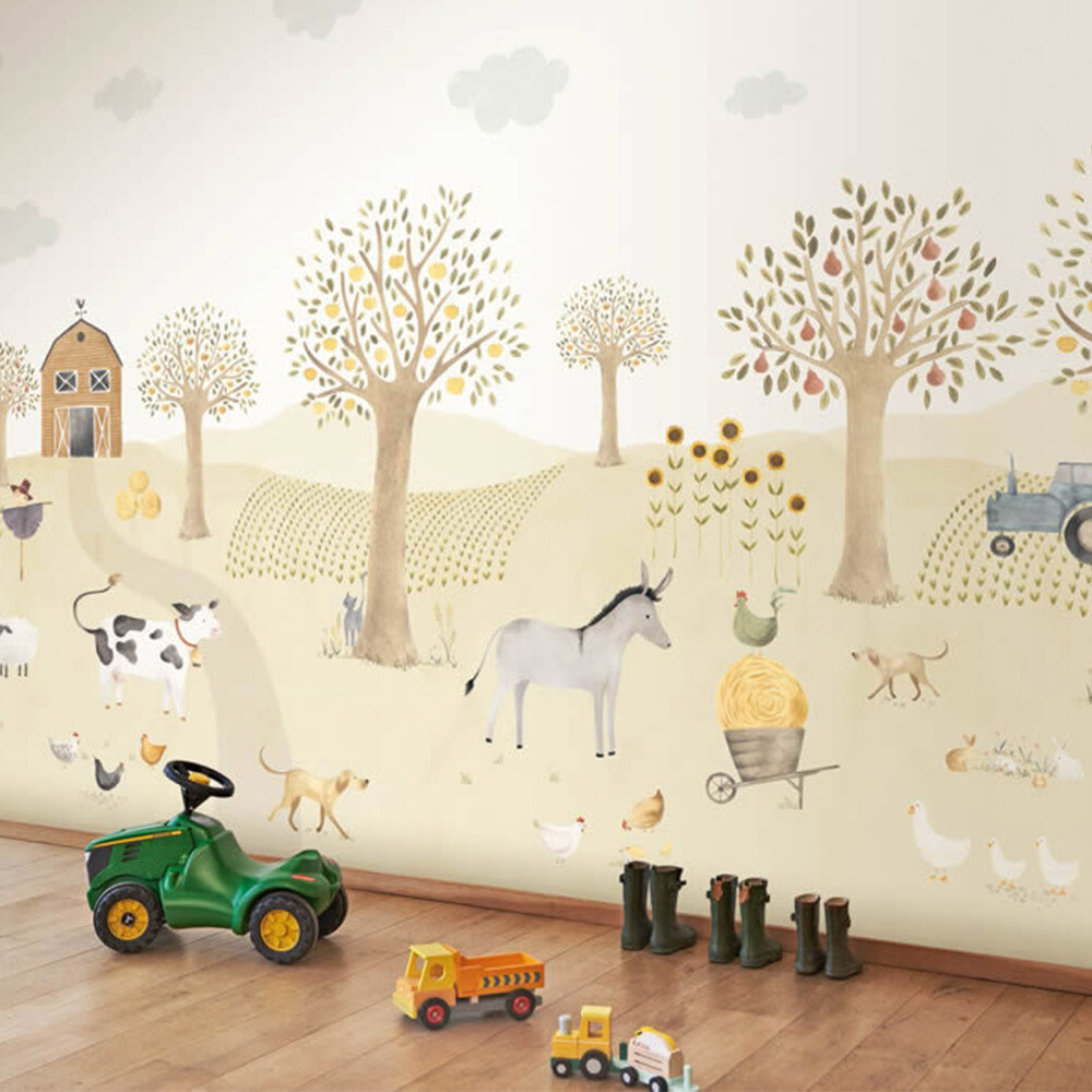 Bauernhof-Muster auf Wandbildern sind sehr beliebt und die Farbe pastellfarben passt gut zum Traktor und verschiedene Tiere-Motiv OUAT88567711. Kids lieben Wandbilder, da sich damit einzelne Wände im Kinderzimmer mit ihren Lieblingsmotiven hervorheben lassen. Die Kollektion Casadeco - Once upon a time ist mit seiner Tiere-Optik perfekt geeignet für alle Jungs und Mädchen die ländliches Flair lieben. Die Struktur dieses Wandbildes ist glatt und die Oberfläche ist matt. Die Größe beträgt 4,00 x 2,80 m. Der Tapetenhersteller Texdecor bietet mit seiner Kollektion Casadeco - Once upon a time viele zur Farbe pastellfarben und themenmäßig perfekt auf einander abgestimmte Ergänzungsprodukte. Dekorieren Sie das Kinderzimmer natürlich in pastellfarben und mit passenden Motiven für Kids. Mit Wandbildern können Sie die Wandgestaltung schnell und einfach ändern. Vlies-Wandbilder lassen sich einfach und schnell verarbeiten und dank der Qualität von Texdecor sind sie hochwertig und strapazierfähig. Bauernhof Wandbilder als Eyecatcher hinter dem Bett oder dem Sideboard im Kinderzimmer.