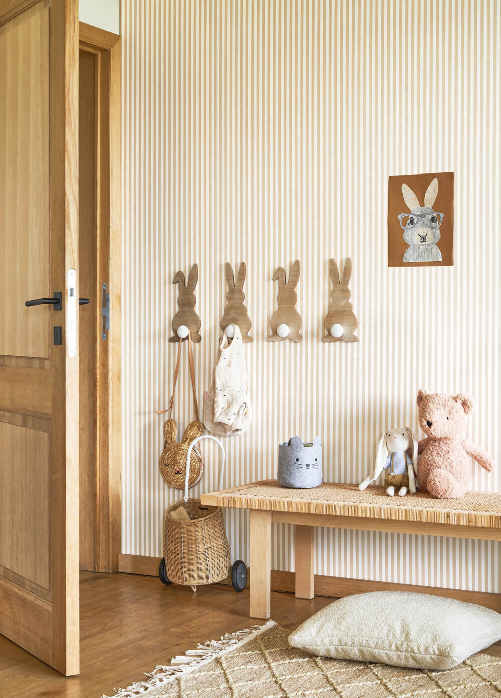 Gestreifte Tapeten zum Gestaltungsthema Streifen für Jungs und Mädchen von Texdecor. Linien für die Wände im Jugendzimmer. Matt und glatte Oberfläche im Format 0,53 x 10,05 m. Mit Gestreifte Tapeten für Kids und Teenies gestalten Sie die Wände im Jugendzimmer im Farbton weiß und beige.