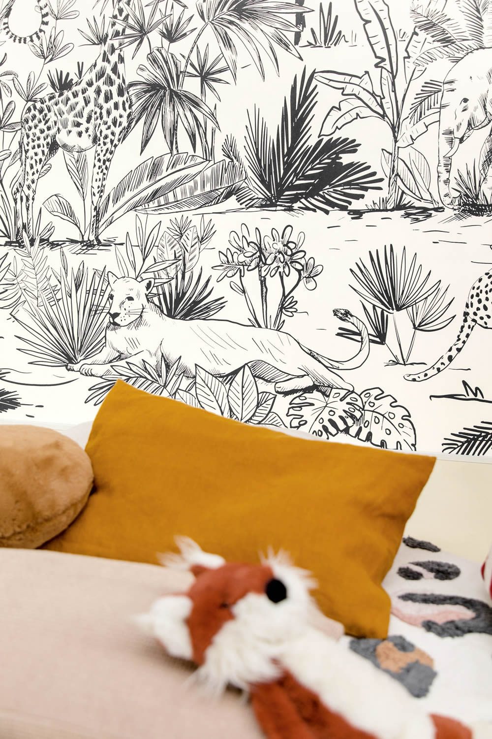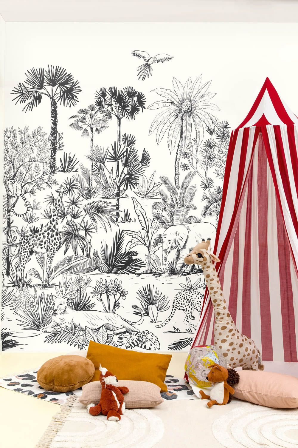 Wandbild ADM103599003 aus der Kollektion Caselio - Autour du Monde mit Afrikanische Tiere und Niedliche Naturtapeten-Motiven im Farbton schwarz und weiß. Ein ganz besonderer Vorteil dieser Caselio - Autour du Monde Kinderkollektion ist die PVC-freie Produktion. Kids lieben Wandbilder, da sich damit einzelne Wände im Kinderzimmer mit ihren Lieblingsmotiven hervorheben lassen. Dschungel sind ein Gestaltungsschwerpunkt dieser abenteuerlichen Kinderkollektion für das Jungs und Mädchen-Zimmer. Das Wandbild hat das Format 2,50 x 2,80 m und die Oberfläche ist matt und glatt. Der Tapetenhersteller Texdecor bietet mit seiner Kollektion Caselio - Autour du Monde viele zur Farbe schwarz und weiß und themenmäßig perfekt auf einander abgestimmte Ergänzungsprodukte. Dschungel verwandeln das Kinderzimmer in ein natürliches, schwarz und weißes Spieleparadies und bringen Kids Spaß beim Spielen. Niedliche Naturtapeten-Motive verwandeln das Kinderzimmer ohne großen Aufwand in ein Mottozimmer. Lassen Sie einzelne Wände lebendig werden und nutzen Sie den Artikel ADM103599003 für die Kinderzimmer-Gestaltung.