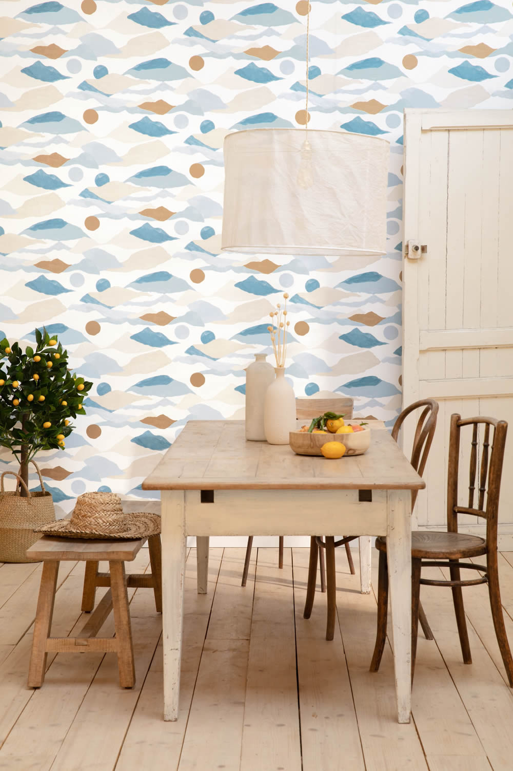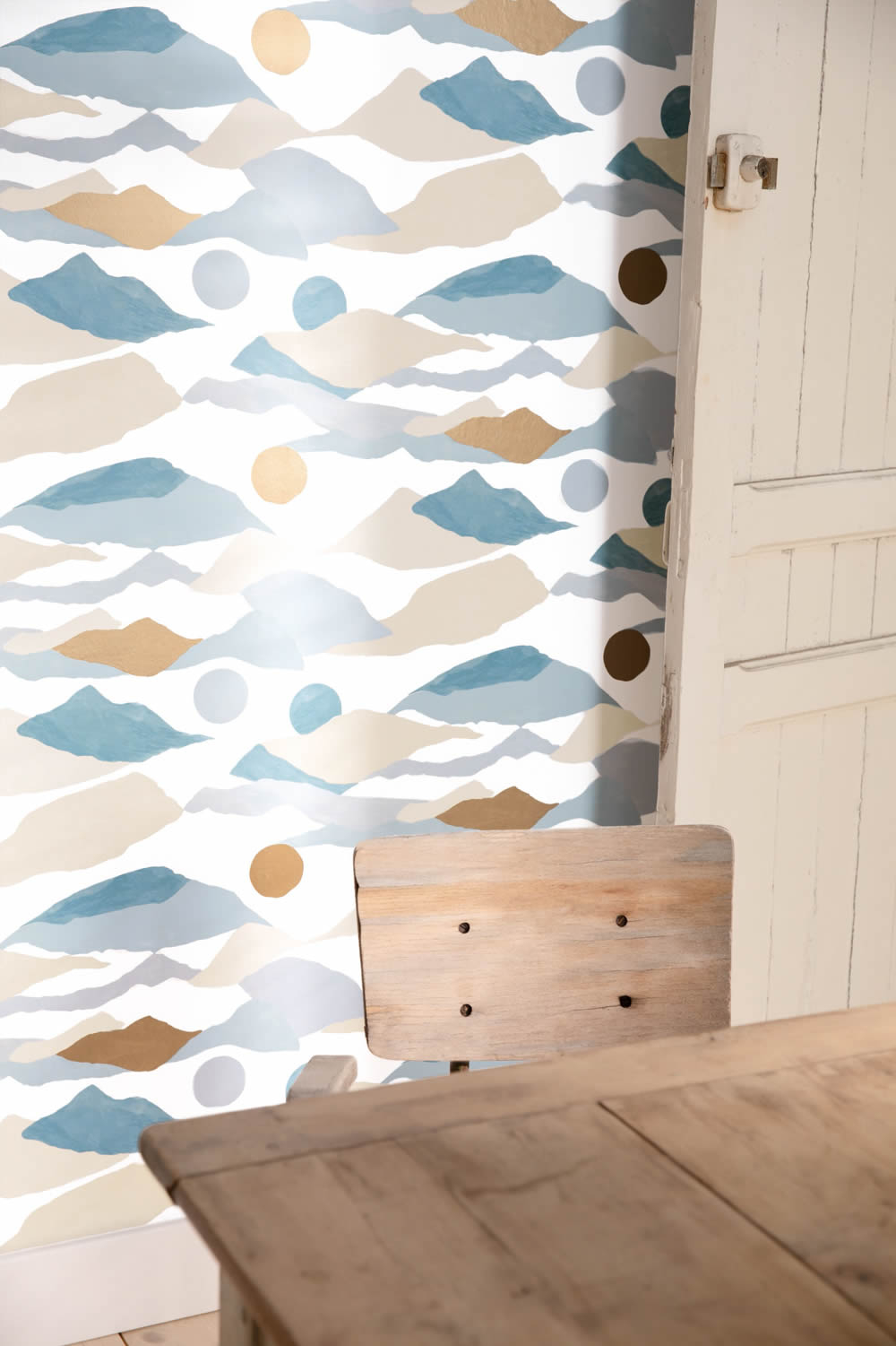 Eigenschaften "Vliestapete Landschaft Berge Japandi-Stil Weiß Blau IMG102186025"
