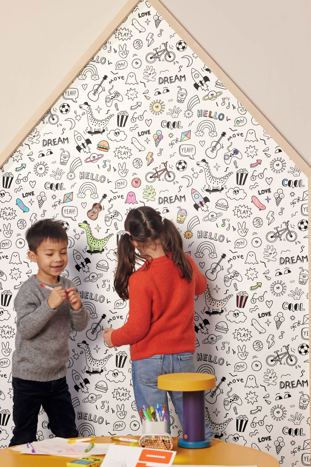 Die Cartoon Vliestapete mit Comic-Motiven in Schwarz-Weiß bringt einen kreativen und modernen Stil ins Kinderzimmer. Das detailreich gezeichnete Design zeigt eine Vielzahl von lustigen und fantasievollen Comic-Elementen, die zu immer neuen Entdeckungen einladen. Die Schwarz-Weiß-Farbgebung sorgt für einen zeitlosen Look, der sich leicht mit verschiedenen Farben und Dekoren kombinieren lässt. Besonders für Kinder, die Comics lieben oder gerne malen, bietet diese Tapete eine inspirierende Umgebung. Die hochwertige Vliestapete überzeugt durch ihre glatte Oberfläche, die die feinen Linien und Kontraste des Musters besonders gut zur Geltung bringt. Dank Wandklebetechnik ist die Tapete besonders leicht anzubringen und kann bei Bedarf trocken und rückstandslos entfernt werden. Sie ist zudem sehr gut lichtbeständig, sodass die Zeichnungen lange klar und intensiv bleiben, sowie waschbeständig für eine einfache Reinigung. Ihre schwer entflammbare Eigenschaft macht sie besonders sicher für Kinderzimmer. Nachhaltig und umweltfreundlich hergestellt, ist die Tapete FSC- und CE-zertifiziert. Teil der Kollektion Les Minis Mondes des renommierten Herstellers Texdecor, vereint sie höchste Qualität mit kreativem Design und ist eine ideale Wahl für Kinder zwischen 6 und 12 Jahren, die ihre Wände mit einem Hauch von Abenteuer und Fantasie gestalten möchten.