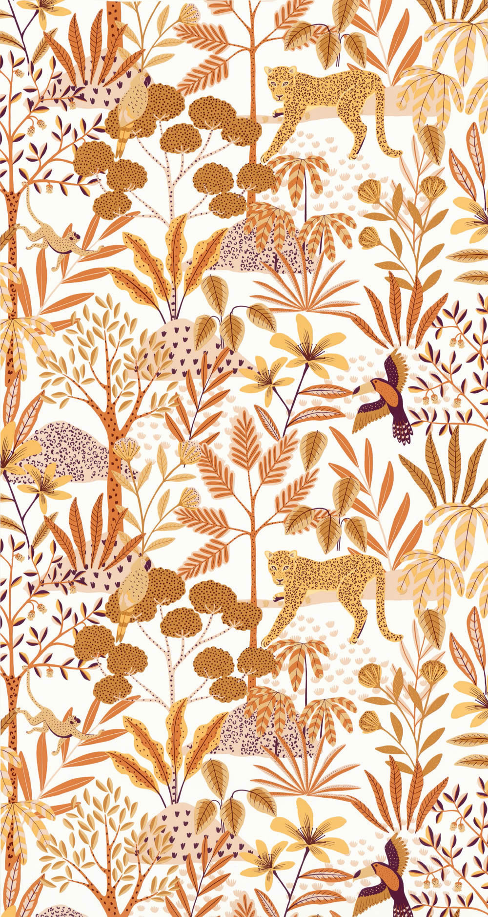 Vliestapete tropische Bäume Dschungel weiß grün orange LGG104480767