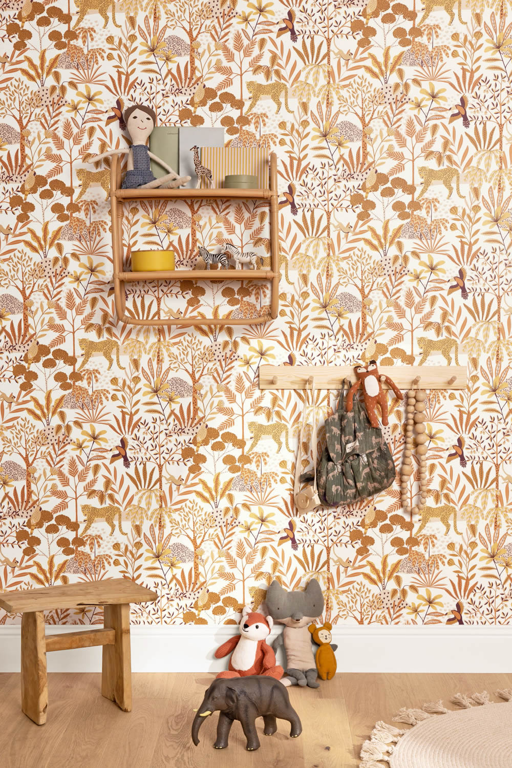 Eine weiße, grün und orange Vliestapete LGG104480767 zum beliebten Kinder-Thema Dschungel und Jaguare, Affen und Papageien lässt Kinderherzen höher schlagen. Die Besonderheit dieser Kinderkollektion Caselio - Let´s Go Girls ist, dass alle Vliestapeten 100% PVC-frei produziert werden. Tropische Bäume für tierisches Flair im Zimmer von Jungs und Mädchen. Die Oberfläche der Vliestapete ist matt und die Struktur ist glatt. Das Format beträgt 0,53 x 10,05 m. In dieser Kollektion Caselio - Let´s Go Girls gibt es viele weitere Artikel als farblich und zum Thema Dschungel passende Ergänzungsprodukte. Mit der weißen, grün und orangen Vliestapete gestalten Sie das Kinderzimmer und Teeniezimmer ganz nach den Wünschen Ihres Kindes. Mit Hilfe dieser Vliestapete lassen sich einfach und schnell wunderschöne, tierische Highlights an die Wände im Kinderzimmer und Teeniezimmer zaubern.. Eine Vliestapete setzt einzelne Wände gezielt in Szene und lässt sich gut mit Farben oder Unitapeten kombinieren.