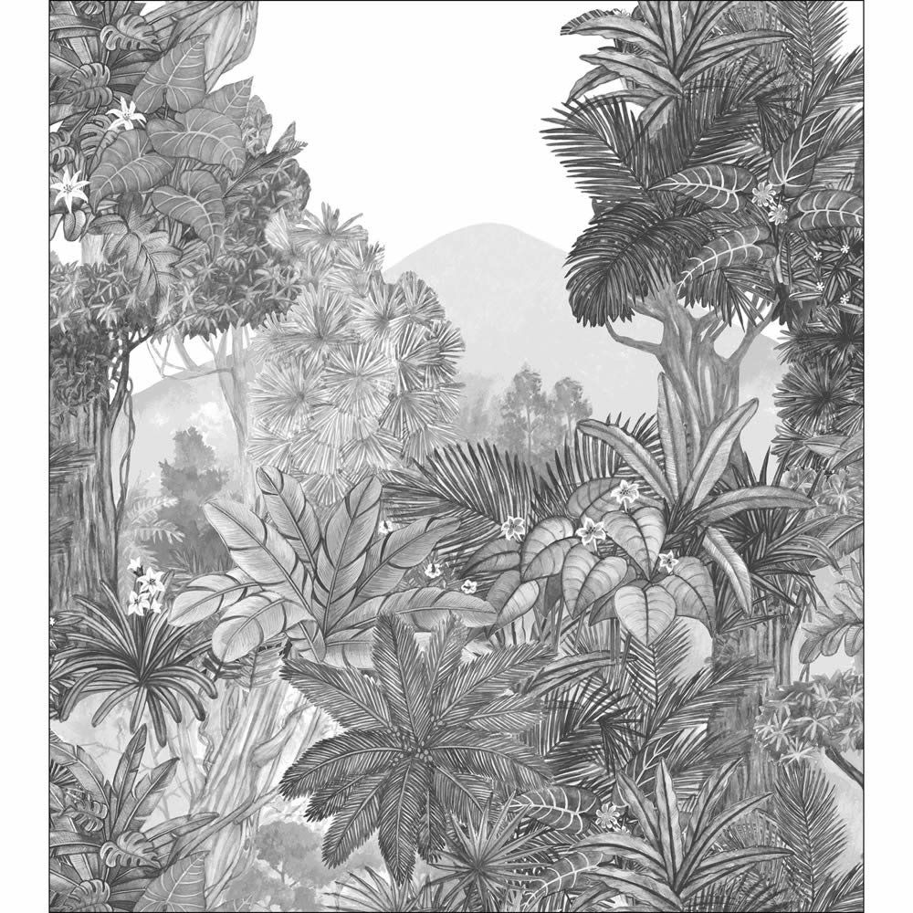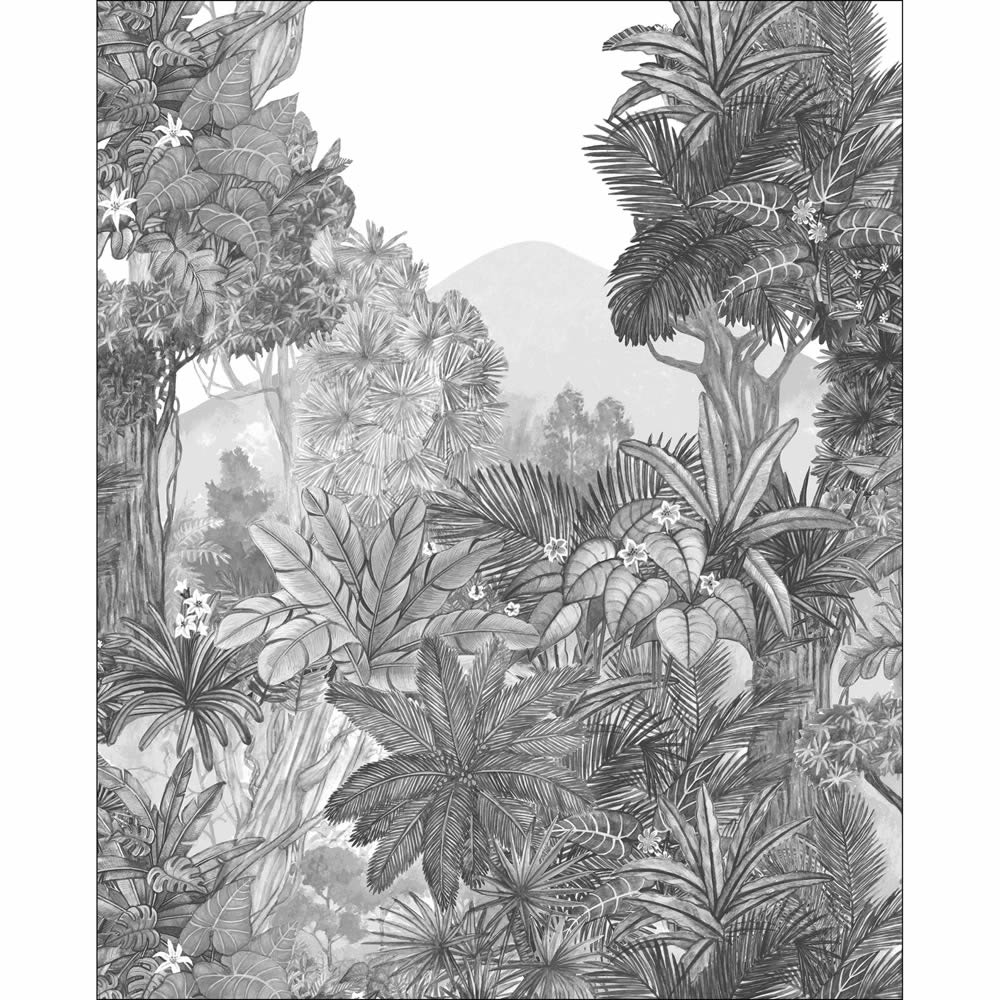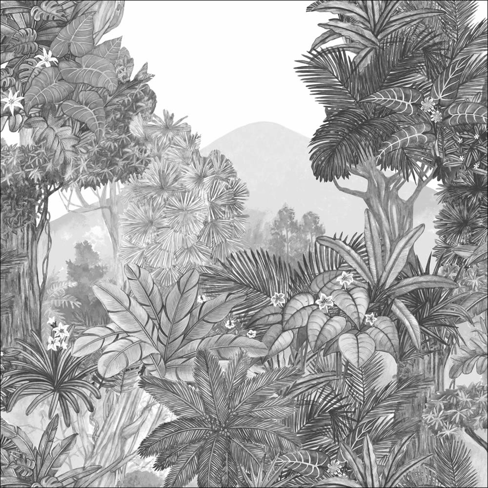 Produktinformationen "Wandbild L Tropenwald Berge Zeichnung Mangroven grau weiß PMW104859202"