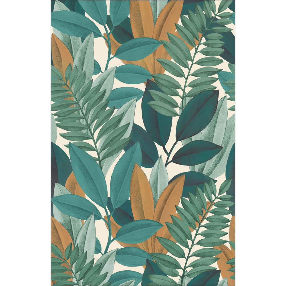 Die Fototapete mit tropischem Blättermuster verwandelt den Raum in eine exotische Dschungellandschaft voller intensiver Farben und üppiger Naturdetails. Die großflächige Anordnung von Blättern in Blau, Ocker und Rosa erzeugt eine faszinierende Tiefe und lässt die Wand lebendig wirken. Durch die harmonische Kombination aus warmen und kühlen Farbtönen entsteht ein ausdrucksstarkes, aber dennoch ausgewogenes Gesamtbild. Das Design erinnert an tropische Regenwälder und verleiht dem Raum eine warme, stilvolle Atmosphäre. Die Blätter sind kunstvoll illustriert und überlappen sich dynamisch, wodurch eine natürliche Bewegung und Lebendigkeit in den Raum getragen wird. Diese Tapete eignet sich hervorragend für moderne Wohnräume, Jugendzimmer oder kreative Gestaltungsbereiche. Die glatte, matte Oberfläche verstärkt den hochwertigen Look und sorgt für eine edle Optik. Dank der wasserbeständigen und lichtbeständigen Eigenschaften bleibt das Design lange erhalten. Die Wandklebetechnik ermöglicht eine einfache Anbringung ohne Einweichzeit, und falls eine Veränderung gewünscht ist, kann die Tapete trocken restlos entfernt werden. Diese farbenfrohe Dschungel-Tapete ist ideal für alle, die eine moderne, exotische und kraftvolle Wandgestaltung suchen.