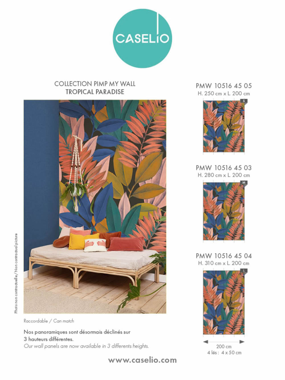 Produktinformationen "Wandbild L üppige tropische Wälder Blätter blau ocker rosa PMW105164504"