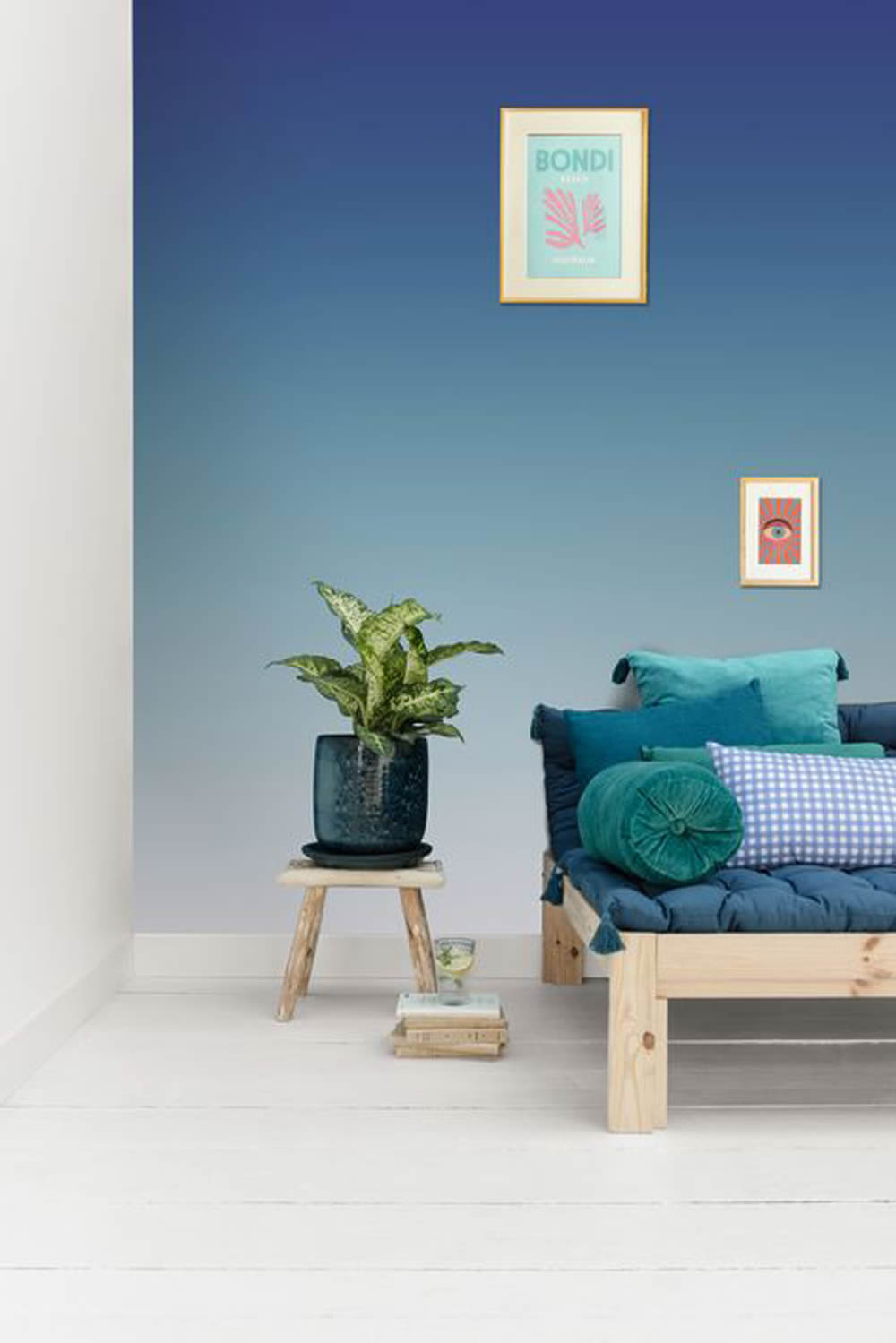 Die Fototapete mit weichem Farbverlauf von intensivem Blau bis zu sanftem Mint bringt eine moderne und beruhigende Atmosphäre in den Raum. Die fließenden Übergänge schaffen eine harmonische Optik, die an den Himmel oder das Meer erinnert und dadurch ein Gefühl von Weite und Leichtigkeit vermittelt. Die klare, reduzierte Gestaltung macht diese Tapete besonders vielseitig - sie passt perfekt zu modernen, minimalistischen oder skandinavischen Einrichtungsstilen. Die Farbgebung ist ideal, um eine entspannte und stilvolle Umgebung in Jugendzimmern, Wohnräumen oder kreativen Arbeitsbereichen zu schaffen. Durch die sanften Abstufungen lässt sich diese Tapete hervorragend mit verschiedenen Farben und Möbeln kombinieren. Die glatte, matte Oberfläche sorgt für eine elegante Optik und verstärkt den hochwertigen Look. Dank der wasserbeständigen und lichtbeständigen Eigenschaften bleibt das Design lange frisch und farbintensiv. Die Wandklebetechnik ermöglicht eine einfache Anbringung ohne Einweichzeit, und falls eine Veränderung gewünscht ist, kann die Tapete trocken restlos entfernt werden. Diese Farbverlauf-Tapete ist ideal für alle, die mit subtilen Farbtönen eine elegante und moderne Raumgestaltung verwirklichen möchten.