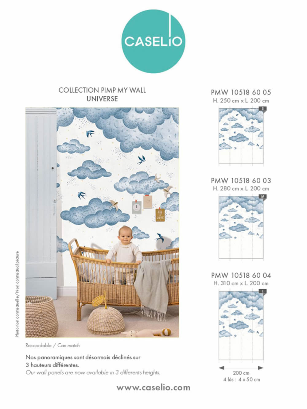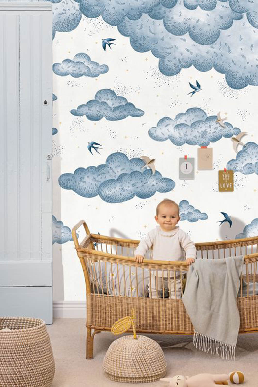 Dieses Wandbild verwandelt jeden Raum in eine friedliche Himmelslandschaft mit sanft schwebenden Wolken und frei fliegenden Schwalben. Die fein gezeichneten Wolken in verschiedenen Blautönen wirken luftig und leicht, während kleine Sterne für eine traumhafte, fast märchenhafte Stimmung sorgen. Die Schwalben, die elegant durch den Himmel gleiten, symbolisieren Freiheit und Leichtigkeit, wodurch dieses Design eine besonders beruhigende Wirkung entfaltet. Der helle Hintergrund verleiht dem Motiv zusätzliche Frische und lässt den Raum größer und offener erscheinen. Die matte, glatte Oberfläche hebt die feinen Details hervor und verstärkt die hochwertige Optik. Mit einer Größe von 2,00 x 2,50 m wird diese Fototapete zu einem sanften Blickfang in Baby oder Kinderzimmern. Dank der ansatzfreien Gestaltung ist die Anbringung besonders einfach, da keine Musteranschlüsse beachtet werden müssen. Die Wandklebetechnik ermöglicht eine mühelose Montage, während die Tapete trocken restlos entfernt werden kann, wenn eine Veränderung gewünscht ist. Zudem ist sie wasserbeständig und gut lichtbeständig, sodass die zarten Farben lange erhalten bleiben. Dieses Wandbild schafft eine sanfte, beruhigende Umgebung, die zum Träumen einlädt und sich ideal für kleine Entdecker eignet.