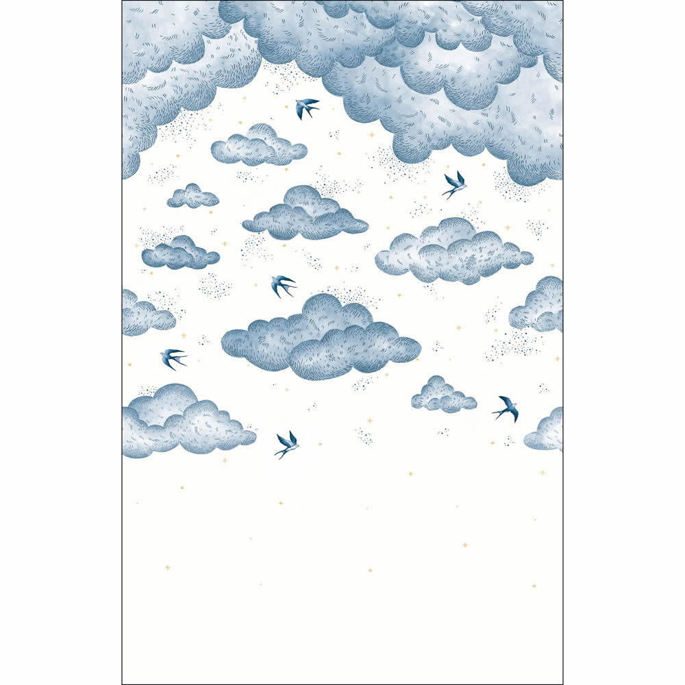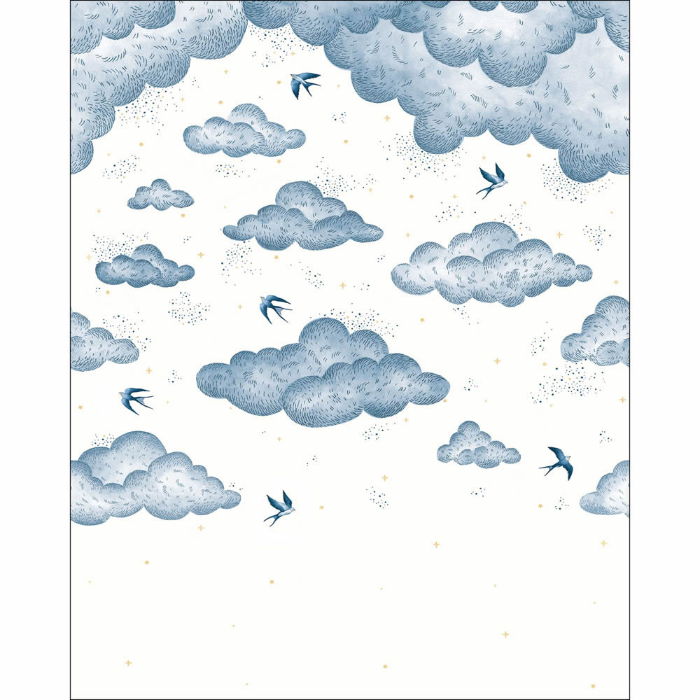 Wandbild S Schwalben in den Wolken Vögel und Sterne blau weiß PMW105186005