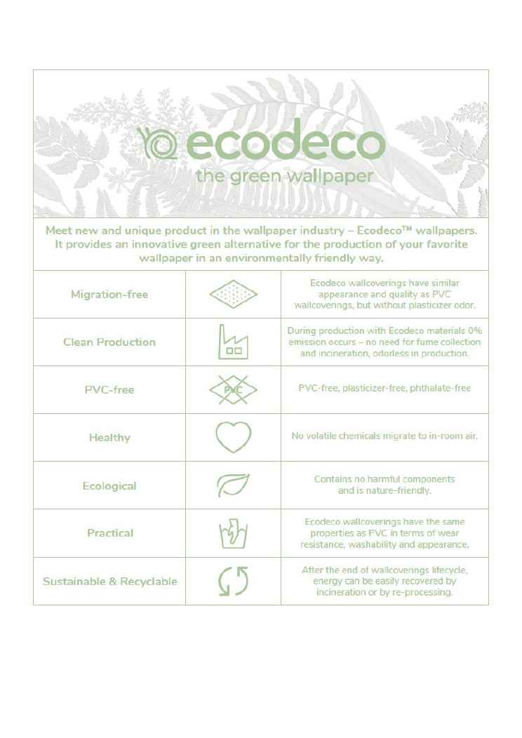 | Eigenschaften: | Gerader Ansatz, Hoch Waschbeständig, PVC frei, Trocken restlos abziehbar, Wandklebetechnik, gut lichtbeständig |