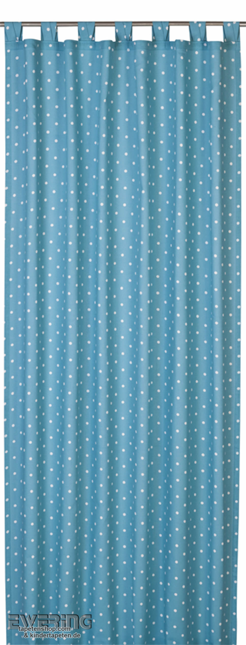 Schmücken Sie das Kinderzimmer mit dieser blauen Gardine mit weißen Punkten.