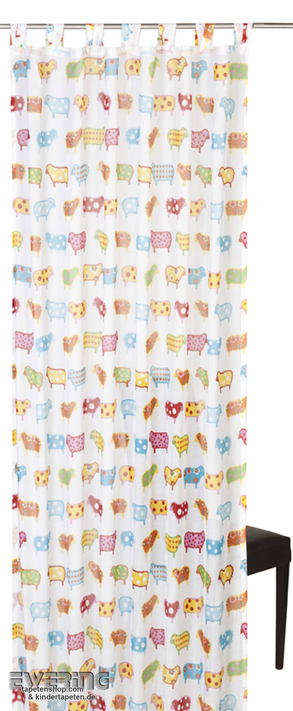Schaf, bunt, weiß, farben, froh, Gardine, Fertigdeko, gelb, rot, grün, blau, Punkte, Blümchen