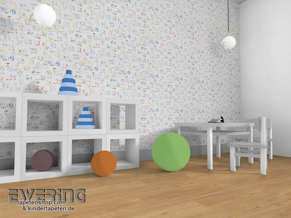 Eigenschaften "Weiß Buchstaben-Zoo Papiertapete"