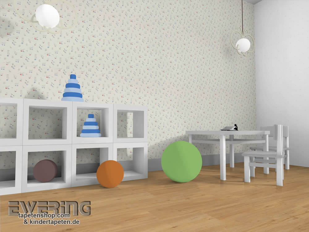 Beige Punkte lassen das Kinderzimmer auf einer cremefarbene Tapete natürlich und verspielt aussehen.