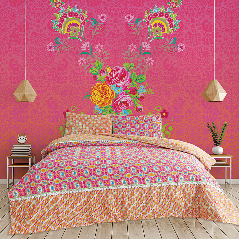 pink, orange, bunt, Muster wiederholbar, Farbverlauf, Kinderzimmer, matt, glatt, Vliesträger, 4 Bahnen, 200 x 280 cm, Blumen