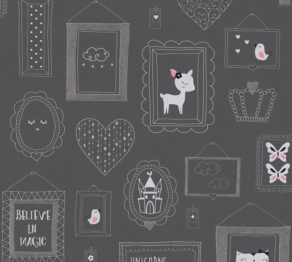 Glitzer, matt, glatt, dunkel-grau, Fotorahmen, Hunde, Katzen, Vliestapete, Kinderzimmer