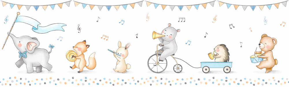 Eine weiße Borte 104721 zum beliebten Kinder-Thema Witzige Borten und Tiere im Zirkus lässt Kinderherzen höher schlagen. Bordüren haben den großen Vorteil, dass sie nicht wie eine Tapete vollflächig über die ganze Wand tapeziert werden müssen und sich somit ganz schnell und einfach ein neuer Look im Kinderzimmer kreeiren lässt. Bei der Platzierung können Sie Ihrer Kreativität freien Lauf lassen. Planen Sie Ihr Kinderzimmer mit einer Borte aus dieser zauberhaften Kinderkollektion Pippo. Die Oberfläche der Borte ist matt und die Struktur ist glatt. Das Format beträgt 0,16 x 5,00 m. Diese Borte lässt sich mit vielen anderen Rasch Textil-Produkten kombinieren. Mit der weißen Borte gestalten Sie das Kinderzimmer ganz nach den Wünschen Ihres Kindes. Weiße Borten bieten die Möglichkeit die Wände passend zu den Gardinen und Teppichen im Kinderzimmer zu gestalten. Lassen Sie einzelne Wände lebendig werden und nutzen Sie den Artikel 104721 für die Kinderzimmer-Gestaltung.