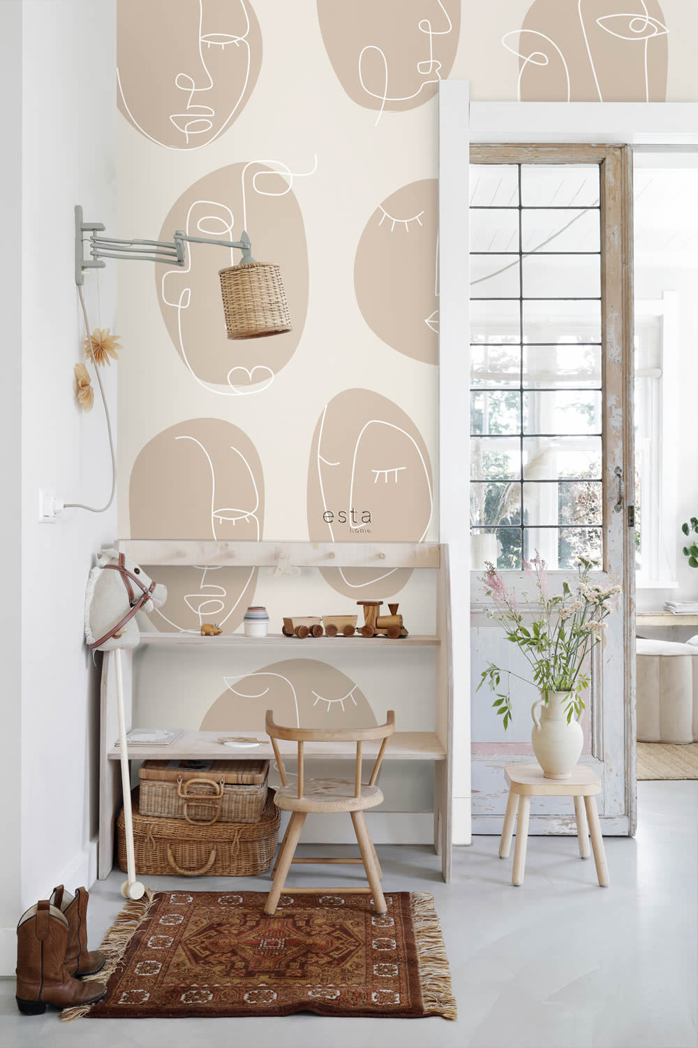 Properties "200 x 279 cm wall art abstract faces line art beige 159252"