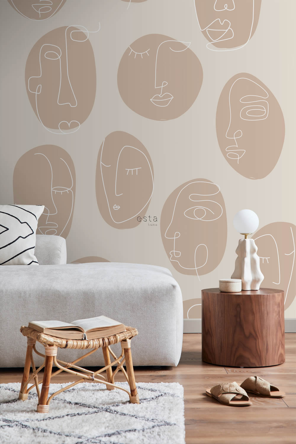 200 x 279 cm wall art abstract faces line art beige 159252