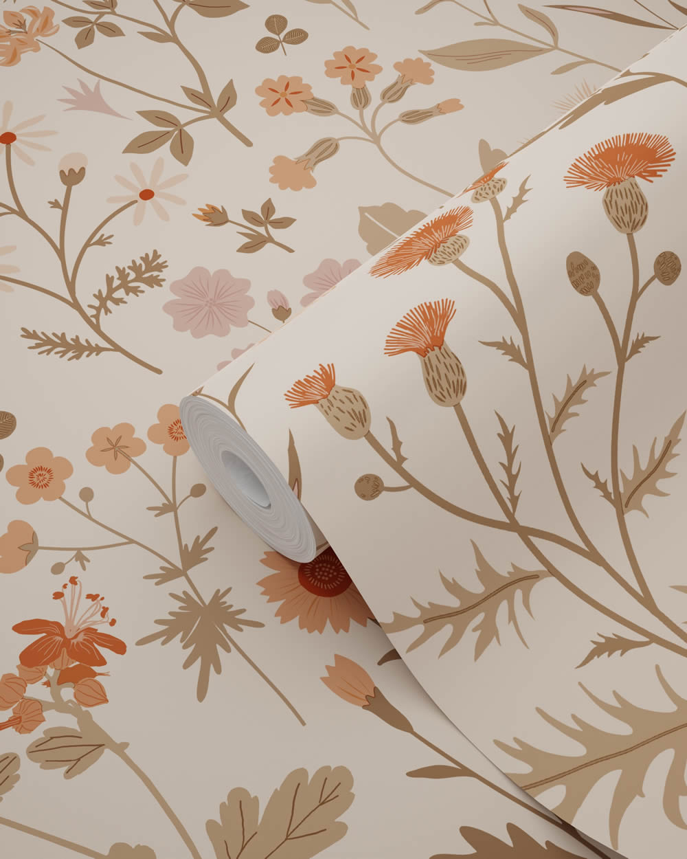 Floral wallpaper non-woven scandi wildflowers brown 139597
