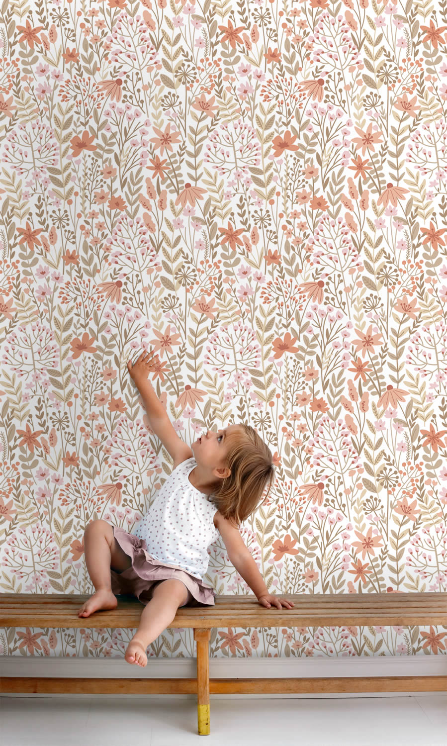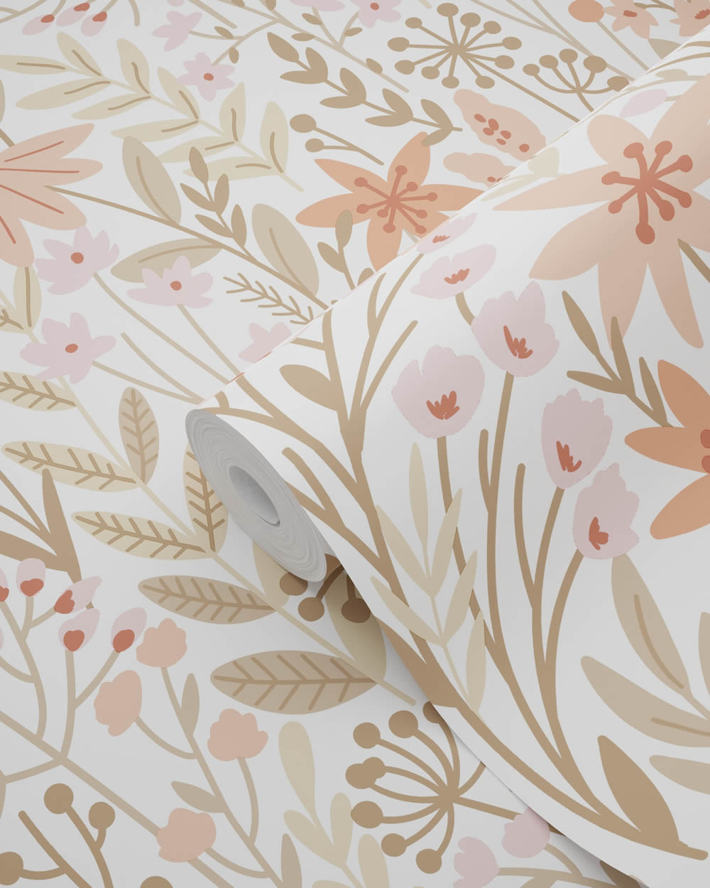 Non-woven scandi wallpaper nature leaves flowers white 139670