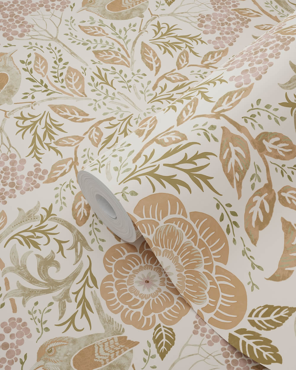 Non-woven wallpaper with a floral nature pattern in beige, cream and natural tones is ideal for girls' and teen rooms. Delicate flowers and natural shapes create a soft and welcoming atmosphere across the wall. Its smooth matte surface adds a modern and high-quality finish. Easy to apply using the paste-the-wall method, lightfast, washable and dry strippable. Straight match with a 53 cm repeat.
